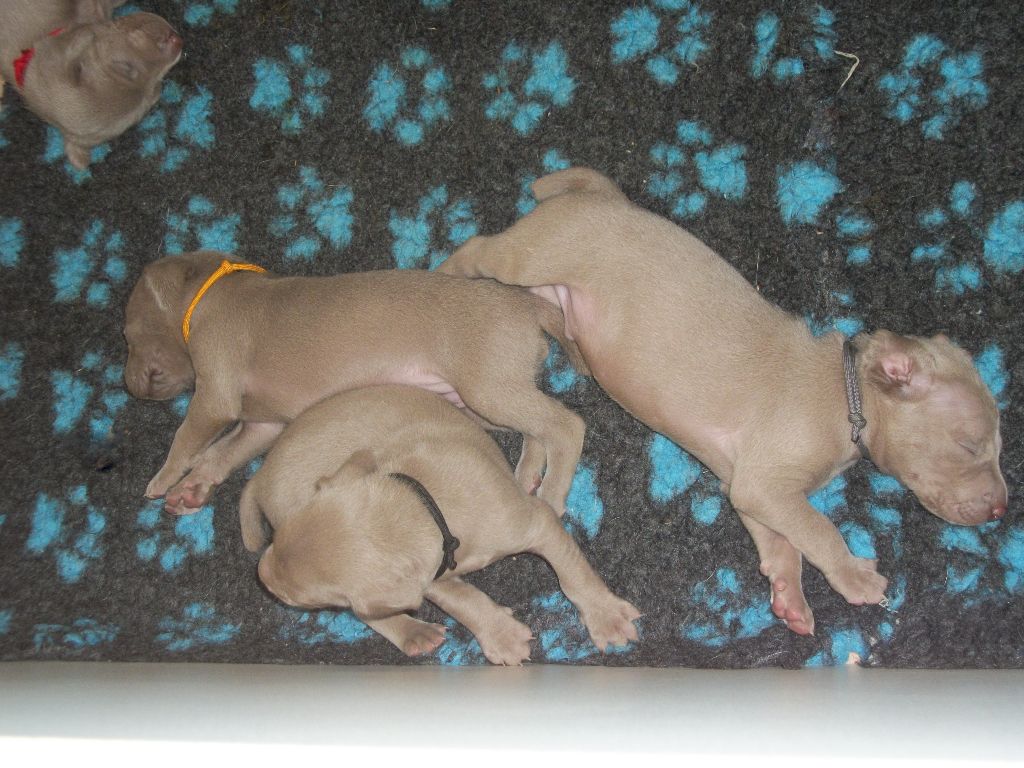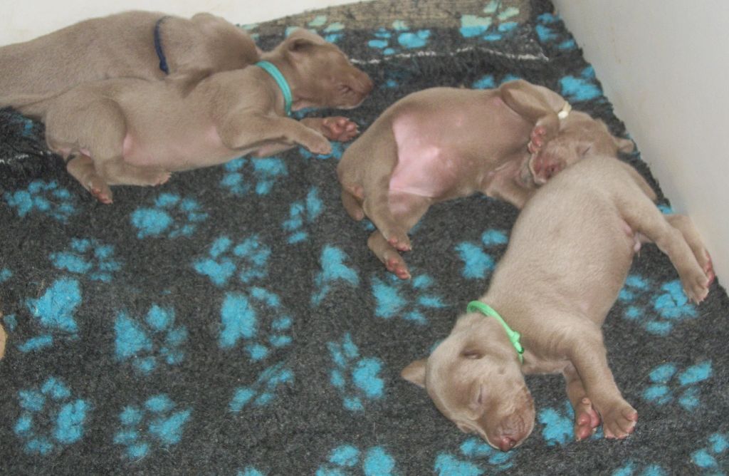 Nous sommes éleveurs, expérimentés et passionnés, nous connaissons bien le Braque de Weimar, nos chiens ne vivent pas en chenil mais partagent notre quotidien entre maison, jardin, et balades sportives, nous pouvons vous parler plus longuement du caractère et des nombreuses qualités du Weimar par téléphone si vous le souhaitez. Nous suivons nos chiots à vie et sommes toujours disponibles pour tout conseil après leur départ.